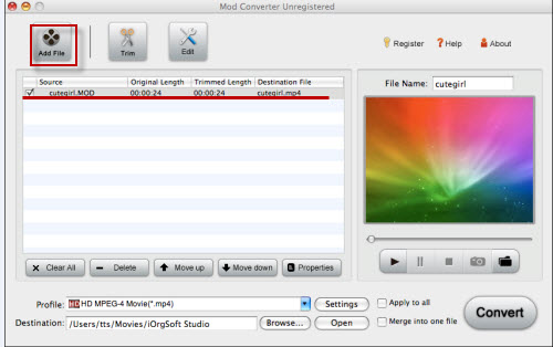 Quello di cui hai bisogno è un semplice convertitore MOD per Mac come iOrgsoft Mod Converter per Mac che sia in grado di trasformare il formato MOD in qualsiasi altro formato, come MOV in modo da poterlo tranquillamente aprire e visualizzare sul tuo MacBook.